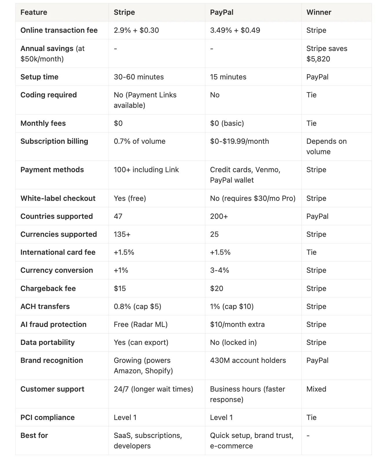 The fee difference between Stripe vs PayPal adds up fast. Here's exactly what you'll pay with each platform in 2026.